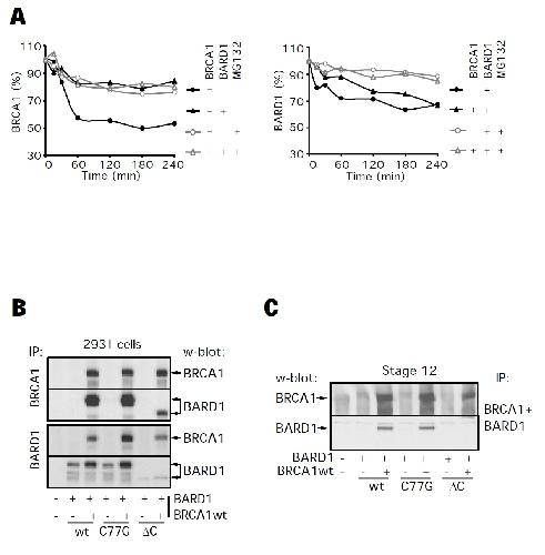Functional communication between endogenous BRCA1 and its partner, BARD1, during Xenopus laevis development., Joukov V, Chen J, Fox EA, Green JB, Livingston DM., Proc Natl Acad Sci U S A. October 9, 2001; 98 (21): 12078-83. |