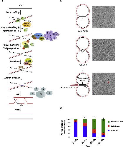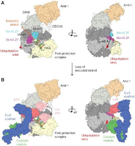 Replication Fork Reversal during DNA Interstrand Crosslink Repair Requires CMG Unloading., Amunugama R, Willcox S, Wu RA, Abdullah UB, El-Sagheer AH, Brown T, McHugh PJ, Griffith JD, Walter JC., Cell Rep. June 19, 2018; 23 (12): 3419-3428. |