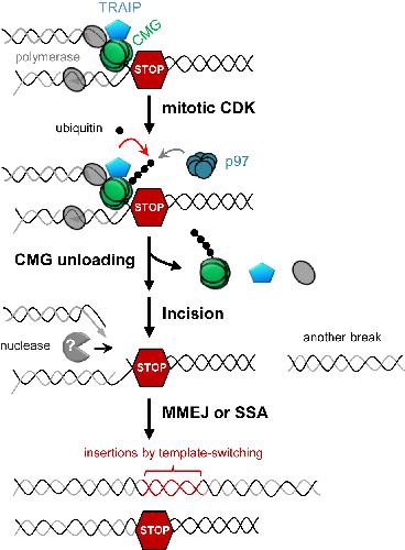 Mitotic CDK Promotes Replisome Disassembly, Fork Breakage, and Complex DNA Rearrangements., Deng L, Wu RA, Sonneville R, Kochenova OV, Labib K, Pellman D, Walter JC., Mol Cell. March 7, 2019; 73 (5): 915-929.e6. |
