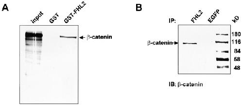 The LIM-only protein FHL2 interacts with beta-catenin and promotes differentiation of mouse myoblasts. , Martin B, Schneider R, Janetzky S, Waibler Z, Pandur P , Kühl M , Behrens J, von der Mark K, Starzinski-Powitz A, Wixler V., J Cell Biol. October 14, 2002; 159 (1): 113-22.