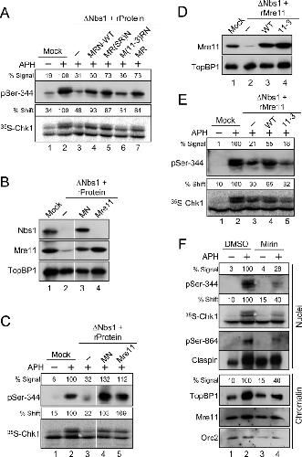 The Mre11- Rad50- Nbs1 (MRN) complex has a specific role in the activation of Chk1 in response to stalled replication forks. , Lee J , Dunphy WG ., Mol Biol Cell. May 1, 2013; 24 (9): 1343-53.