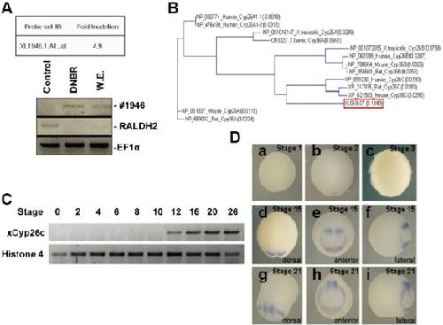 xCyp26c Induced by Inhibition of BMP Signaling Is Involved in Anterior- Posterior Neural Patterning of Xenopus laevis. , Yu SB , Umair Z, Kumar S , Lee U, Lee SH, Kim JI , Kim S, Park JB , Lee JY , Kim J ., Mol Cells. April 30, 2016; 39 (4): 352-7.