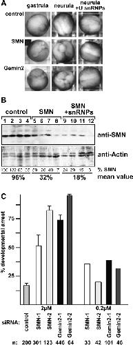 Reduced U snRNP assembly causes motor axon degeneration in an animal model for spinal muscular atrophy. , Winkler C, Eggert C, Gradl D , Meister G, Giegerich M, Wedlich D , Laggerbauer B, Fischer U., Genes Dev. October 1, 2005; 19 (19): 2320-30.