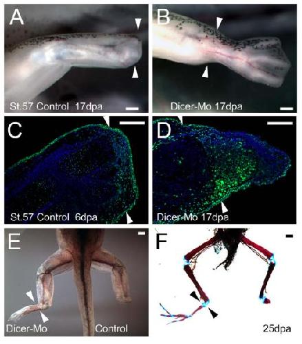 Dicer inactivation stimulates limb regeneration ability in Xenopus laevis., Zhang M, Yang L, Yuan F, Chen Y, Lin G., Wound Repair Regen. January 1, 2018; 26 (1): 46-53. |