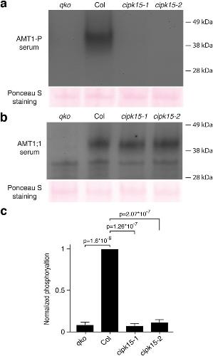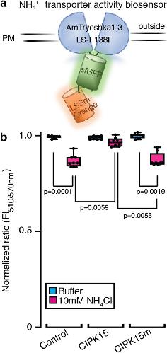 Feedback inhibition of AMT1 NH4+-transporters mediated by CIPK15 kinase., Chen HY, Chen YN, Wang HY, Liu ZT, Frommer WB, Ho CH., BMC Biol. December 14, 2020; 18 (1): 196. |