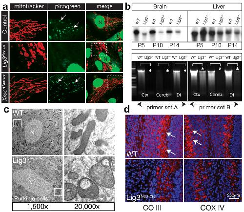 DNA ligase III is critical for mtDNA integrity but not Xrcc1-mediated nuclear DNA repair. , Gao Y, Katyal S, Lee Y , Zhao J, Rehg JE, Russell HR, McKinnon PJ., Nature. March 10, 2011; 471 (7337): 240-4.