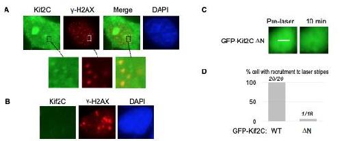 Kinesin Kif2C in regulation of DNA double strand break dynamics and repair. , Zhu S, Paydar M, Wang F, Li Y, Wang L, Barrette B, Bessho T, Kwok BH, Peng A ., Elife. January 17, 2020; 9