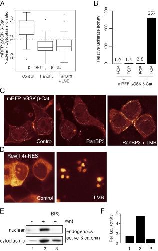 RanBP3 enhances nuclear export of active (beta)-catenin independently of CRM1. , Hendriksen J, Fagotto F , van der Velde H, van Schie M, Noordermeer J, Fornerod M., J Cell Biol. December 5, 2005; 171 (5): 785-97.