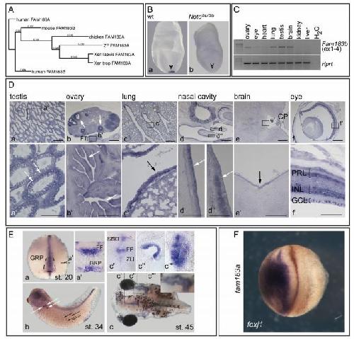 The evolutionary conserved FOXJ1 target gene Fam183b is essential for motile cilia in Xenopus but dispensable for ciliary function in mice., Beckers A, Ott T, Schuster-Gossler K, Boldt K, Alten L, Ueffing M, Blum M, Gossler A., Sci Rep. October 2, 2018; 8 (1): 14678. |