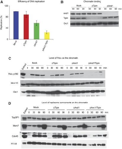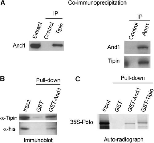 Tipin/ Tim1/ And1 protein complex promotes Pol alpha chromatin binding and sister chromatid cohesion. , Errico A, Cosentino C, Rivera T, Losada A, Schwob E, Hunt T , Costanzo V., EMBO J. December 2, 2009; 28 (23): 3681-92.