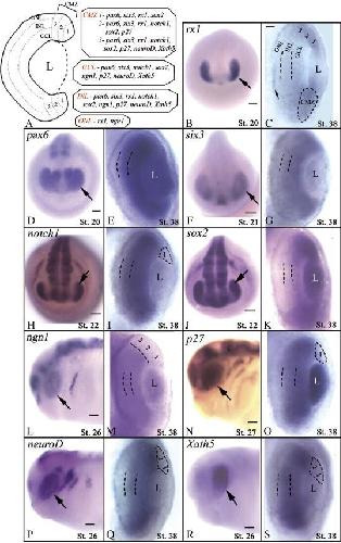 Alterations of rx1 and pax6 expression levels at neural plate stages differentially affect the production of retinal cell types and maintenance of retinal stem cell qualities., Zaghloul NA, Moody SA., Dev Biol. June 1, 2007; 306 (1): 222-40. |
