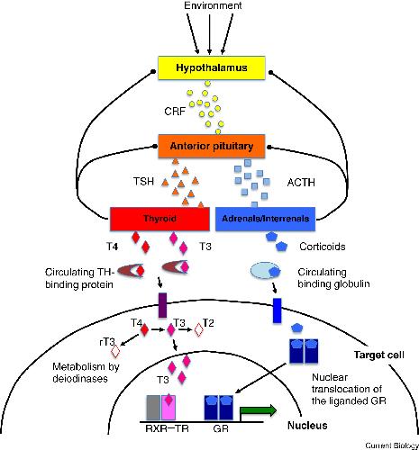 Evolution of ligands, receptors and metabolizing enzymes of thyroid signaling., Holzer G, Roux N, Laudet V., Mol Cell Endocrinol. December 25, 2017; 459 5-13. |