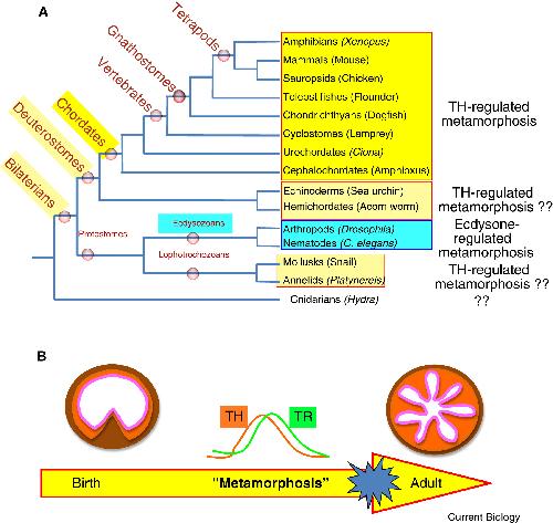 The origins and evolution of vertebrate metamorphosis., Laudet V., Curr Biol. September 27, 2011; 21 (18): R726-37. |