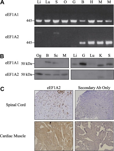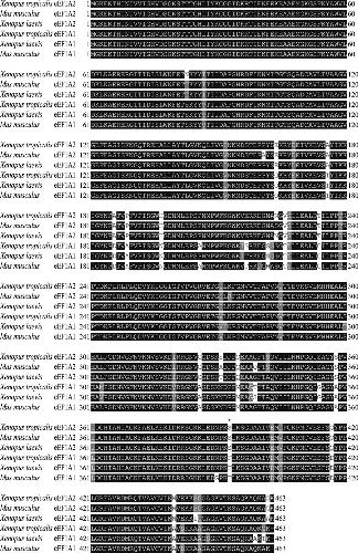 Evolutionary importance of translation elongation factor eEF1A variant switching: eEF1A1 down-regulation in muscle is conserved in Xenopus but is controlled at a post-transcriptional level. , Newbery HJ, Stancheva I , Zimmerman LB , Abbott CM., Biochem Biophys Res Commun. July 22, 2011; 411 (1): 19-24.