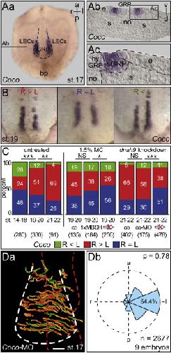 Bicaudal C, a novel regulator of Dvl signaling abutting RNA-processing bodies, controls cilia orientation and leftward flow. , Maisonneuve C, Guilleret I, Vick P , Weber T , Andre P, Beyer T, Blum M , Constam DB., Development. September 1, 2009; 136 (17): 3019-30.