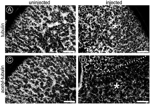 Microinjection of anti- alpha-tubulin antibody (DM1A) inhibits progesterone-induced meiotic maturation and deranges the microtubule array in follicle-enclosed oocytes of the frog, Rana pipiens. , Lessman CA, Wang T, Gard DL , Woods CW., Zygote. February 1, 1997; 5 (1): 83-95.