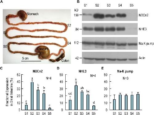 Expression, Localization, and Effect of High Salt Intake on Electroneutral Na+/HCO3 - Cotransporter NBCn2 in Rat Small Intestine: Implication in Intestinal NaCl Absorption. , Wang JL , Zhao L, Zhu J, Wang DK, Ren MJ, Wang M, Liu Y , Boron WF, Chen LM., Front Physiol. January 1, 2019; 10 1334.