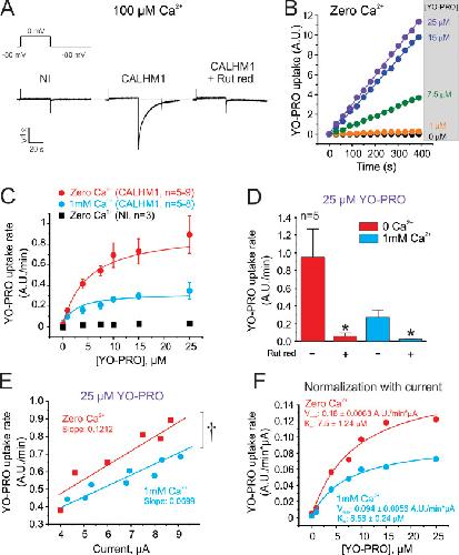 A novel voltage-clamp/dye uptake assay reveals saturable transport of molecules through CALHM1 and connexin channels. , Gaete PS, Lillo MA, López W, Liu Y , Jiang W, Luo Y, Harris AL, Contreras JE., J Gen Physiol. November 2, 2020; 152 (11):