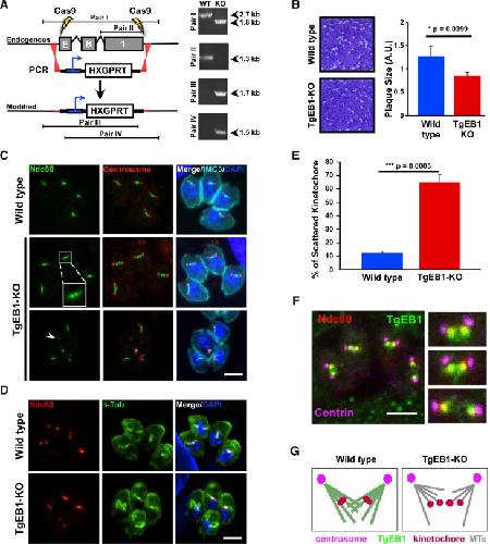 Compartmentalized Toxoplasma EB1 bundles spindle microtubules to secure accurate chromosome segregation. , Chen CT , Kelly M, Leon Jd, Nwagbara B , Ebbert P, Ferguson DJ, Lowery LA , Morrissette N, Gubbels MJ., Mol Biol Cell. December 15, 2015; 26 (25): 4562-76.