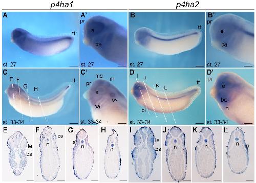 Comparative analysis of p4ha1 and p4ha2 expression during Xenopus laevis development. , Martini D, Giannaccini M, Guadagni V, Marracci S , Giudetti G, Andreazzoli M ., Int J Dev Biol. January 1, 2019; 63 (6-7): 311-316.