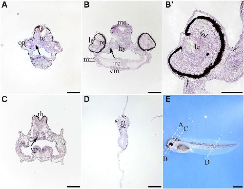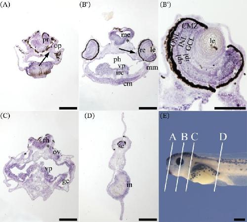 Genetic analysis of metamorphic and premetamorphic Xenopus ciliary marginal zone. , Casarosa S, Leone P, Cannata S, Santini F, Pinchera A, Barsacchi G, Andreazzoli M ., Dev Dyn. June 1, 2005; 233 (2): 646-51.