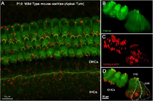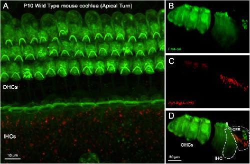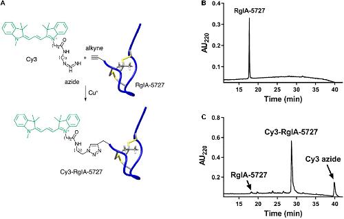 Cy3-RgIA-5727 Labels and Inhibits α9-Containing nAChRs of Cochlear Hair Cells. , Fisher F, Zhang Y , Vincent PFY, Gajewiak J, Gordon TJ, Glowatzki E, Fuchs PA, McIntosh JM., Front Cell Neurosci. January 1, 2021; 15 697560.