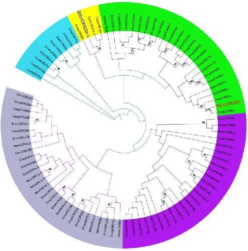 BdorOR88a Modulates the Responsiveness to Methyl Eugenol in Mature Males of Bactrocera dorsalis (Hendel). , Liu H , Chen ZS, Zhang DJ, Lu YY., Front Physiol. January 1, 2018; 9 987.