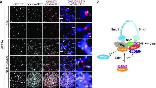 Phosphorylation-enabled binding of SGO1- PP2A to cohesin protects sororin and centromeric cohesion during mitosis. , Liu H , Rankin S , Yu H., Nat Cell Biol. January 16, 2012; 15 (1): 40-9.