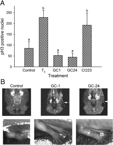 Induction of larval tissue resorption in Xenopus laevis tadpoles by the thyroid hormone receptor agonist GC-1. , Furlow JD , Yang HY, Hsu M, Lim W, Ermio DJ, Chiellini G, Scanlan TS., J Biol Chem. June 18, 2004; 279 (25): 26555-62.