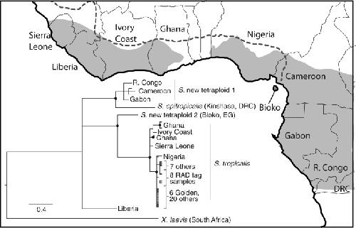 Pan-African phylogeography of a model organism, the African clawed frog 'Xenopus laevis'. , Furman BL, Bewick AJ, Harrison TL, Greenbaum E, Gvoždík V, Kusamba C, Evans BJ ., Mol Ecol. February 1, 2015; 24 (4): 909-25.