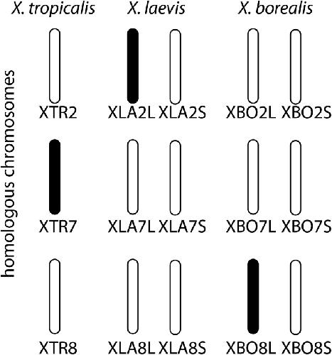 A large pseudoautosomal region on the sex chromosomes of the frog Silurana tropicalis. , Bewick AJ, Chain FJ , Zimmerman LB , Sesay A, Gilchrist MJ , Owens ND, Seifertova E, Krylov V , Macha J, Tlapakova T , Kubickova S, Cernohorska H, Zarsky V, Evans BJ ., Genome Biol Evol. January 1, 2013; 5 (6): 1087-98.