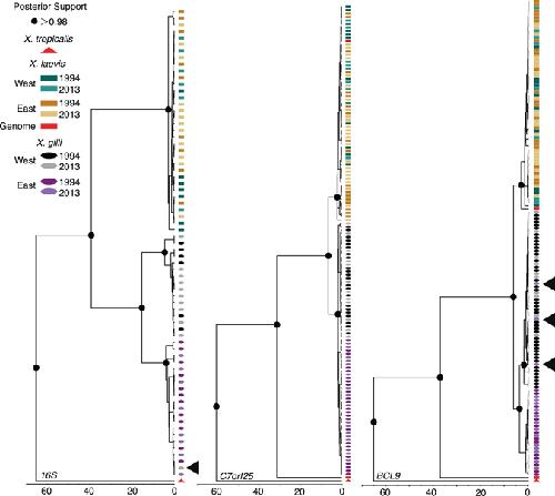 Limited genomic consequences of hybridization between two African clawed frogs, Xenopus gilli and X. laevis (Anura: Pipidae). , Furman BLS, Cauret CMS, Colby GA, Measey GJ, Evans BJ ., Sci Rep. April 24, 2017; 7 (1): 1091.