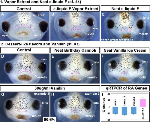 E-liquids and vanillin flavoring disrupts retinoic acid signaling and causes craniofacial defects in Xenopus embryos., Dickinson AJG, Turner SD, Wahl S, Kennedy AE, Wyatt BH, Howton DA., Dev Biol. January 1, 2022; 481 14-29. |