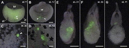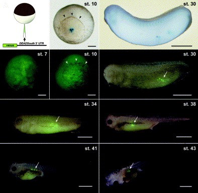 Visualization of the Xenopus primordial germ cells using a green fluorescent protein controlled by cis elements of the 3' untranslated region of the DEADSouth gene. , Kataoka K, Yamaguchi T, Orii H, Tazaki A , Watanabe K , Mochii M ., Mech Dev. October 1, 2006; 123 (10): 746-60.
