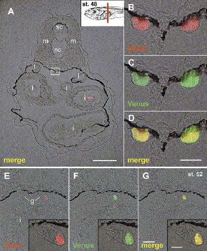 Characterization of a novel type I keratin gene and generation of transgenic lines with fluorescent reporter genes driven by its promoter/enhancer in Xenopus laevis. , Suzuki KT , Kashiwagi K , Ujihara M, Marukane T, Tazaki A , Watanabe K , Mizuno N, Ueda Y, Kondoh H, Kashiwagi A , Mochii M ., Dev Dyn. December 1, 2010; 239 (12): 3172-81.