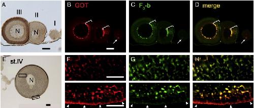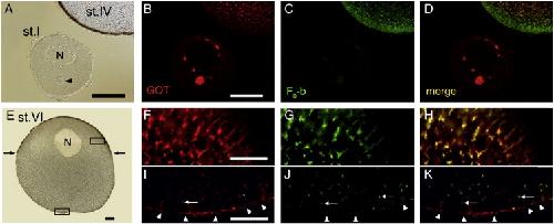 Germ-line mitochondria exhibit suppressed respiratory activity to support their accurate transmission to the next generation. , Kogo N, Tazaki A , Kashino Y, Morichika K, Orii H, Mochii M , Watanabe K ., Dev Biol. January 15, 2011; 349 (2): 462-9.