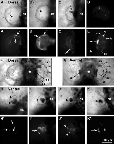 Embryological manipulations in the developing Xenopus inner ear reveal an intrinsic role for Wnt signaling in dorsal-ventral patterning., Forristall CA, Stellabotte F, Castillo A, Collazo A., Dev Dyn. October 1, 2014; 243 (10): 1262-74. |