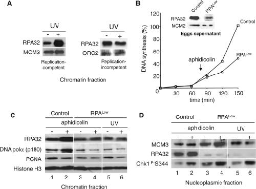 Role of replication protein A as sensor in activation of the S-phase checkpoint in Xenopus egg extracts., Recolin B, Van der Laan S, Maiorano D., Nucleic Acids Res. April 1, 2012; 40 (8): 3431-42. |