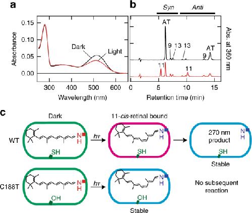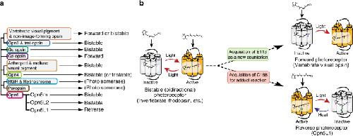 Vertebrate ancient-long opsin has molecular properties intermediate between those of vertebrate and invertebrate visual pigments., Sato K, Yamashita T, Ohuchi H, Shichida Y., Biochemistry. December 6, 2011; 50 (48): 10484-90. |