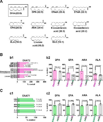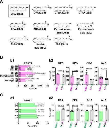 Leucine 434 is essential for docosahexaenoic acid-induced augmentation of L-glutamate transporter current., Takahashi K, Chen L, Sayama M, Wu M, Hayashi MK, Irie T, Ohwada T, Sato K., J Biol Chem. January 1, 2023; 299 (1): 102793. |