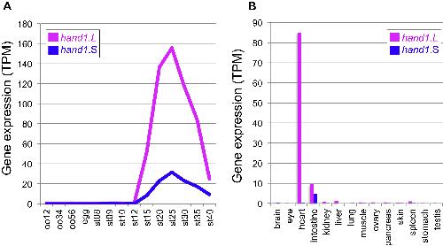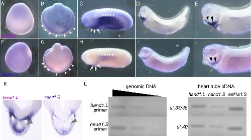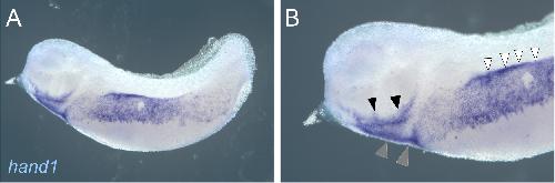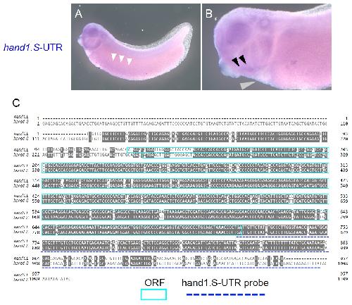 Asymmetrically reduced expression of hand1 homeologs involving a single nucleotide substitution in a cis-regulatory element. , Ochi H , Suzuki N, Kawaguchi A, Ogino H ., Dev Biol. May 15, 2017; 425 (2): 152-160.