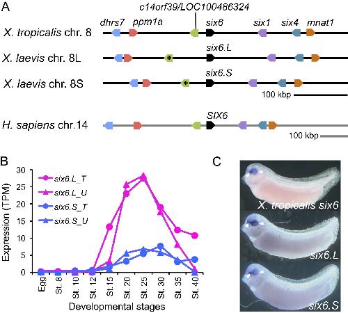 Co-accumulation of cis-regulatory and coding mutations during the pseudogenization of the Xenopus laevis homoeologs six6.L and six6.S. , Ochi H , Kawaguchi A, Tanouchi M, Suzuki N, Kumada T, Iwata Y, Ogino H ., Dev Biol. July 1, 2017; 427 (1): 84-92.