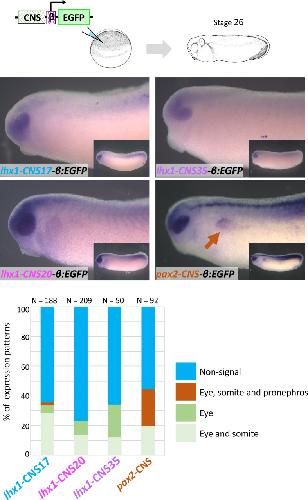 Comparative genomics-based identification and analysis of cis-regulatory elements. , Ogino H , Ochi H , Uchiyama C, Louie S, Grainger RM ., Methods Mol Biol. January 1, 2012; 917 245-63.