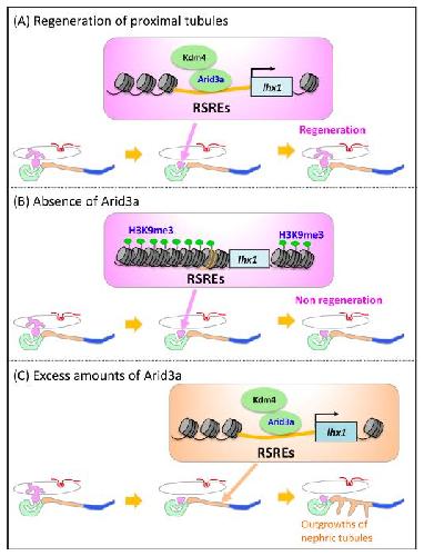 Arid3a regulates nephric tubule regeneration via evolutionarily conserved regeneration signal-response enhancers. , Suzuki N, Hirano K, Ogino H , Ochi H ., Elife. January 8, 2019; 8