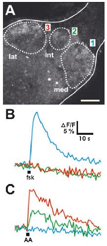 Response profiles to amino acid odorants of olfactory glomeruli in larval Xenopus laevis. , Manzini I , Brase C, Chen TW, Schild D., J Physiol. June 1, 2007; 581 (Pt 2): 567-79.