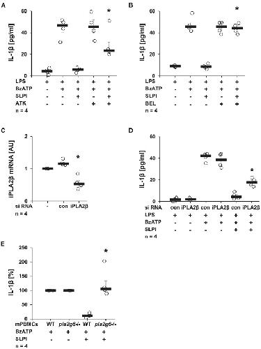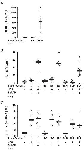 SLPI Inhibits ATP-Mediated Maturation of IL-1β in Human Monocytic Leukocytes: A Novel Function of an Old Player. , Zakrzewicz A, Richter K , Zakrzewicz D, Siebers K, Damm J, Agné A, Hecker A, McIntosh JM, Chamulitrat W, Krasteva-Christ G, Manzini I , Tikkanen R, Padberg W, Janciauskiene S, Grau V., Front Immunol. April 4, 2019; 10 664.