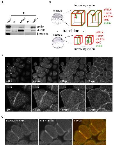 Cortical localization of maternal embryonic leucine zipper kinase ( MELK) implicated in cytokinesis in early xenopus embryos. , Tassan JP ., Commun Integr Biol. July 1, 2011; 4 (4): 483-5.