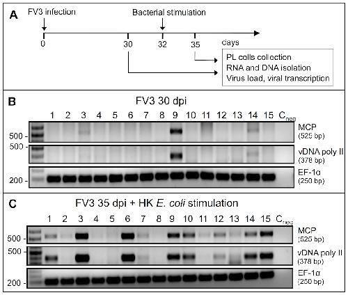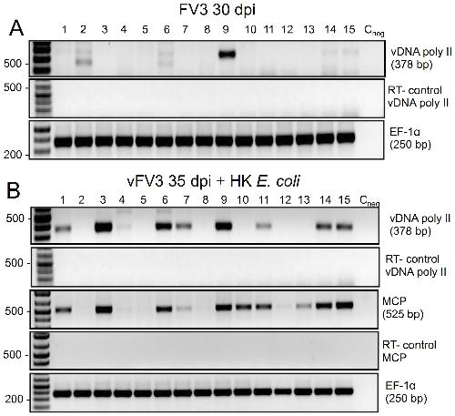 Characterization of Frog Virus 3 knockout mutants lacking putative virulence genes. , Andino Fde J, Grayfer L , Chen G, Chinchar VG, Edholm ES, Robert J ., Virology. November 1, 2015; 485 162-70.