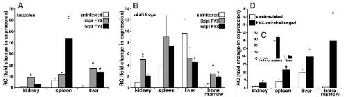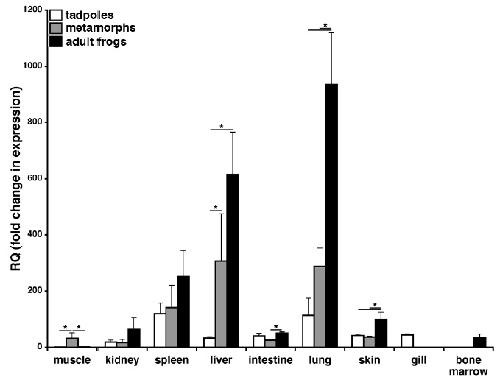Susceptibility of Xenopus laevis tadpoles to infection by the ranavirus Frog-Virus 3 correlates with a reduced and delayed innate immune response in comparison with adult frogs. , De Jesús Andino F, Chen G, Li Z, Grayfer L , Robert J ., Virology. October 25, 2012; 432 (2): 435-43.