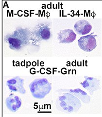 Distinct functional roles of amphibian (Xenopus laevis) colony-stimulating factor-1- and interleukin-34-derived macrophages. , Grayfer L , Robert J ., J Leukoc Biol. October 1, 2015; 98 (4): 641-9.